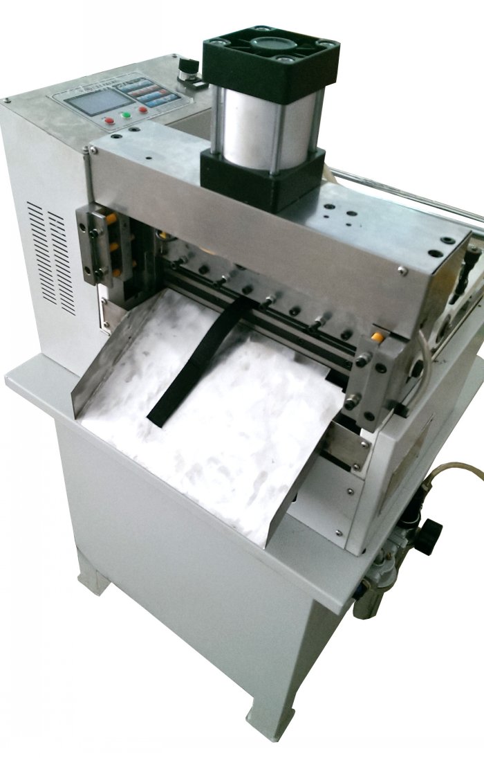 用途:本機適合于:箱包、皮具、鞋業(yè)、電子、繩帶、電子行業(yè)、汽摩配行業(yè)、電器、電機、燈具、玩具、變壓器、服裝、文具等行業(yè)。如:套管、排線、銅鋁線、彩色帶、魔術(shù)帶、織帶、安全帶、PP帶、尼龍帶、粘扣帶、棉紗帶、松緊帶、塑膠帶、拉鏈、套管、紙類、排線、小電線、金屬薄片等材料定長裁切 。